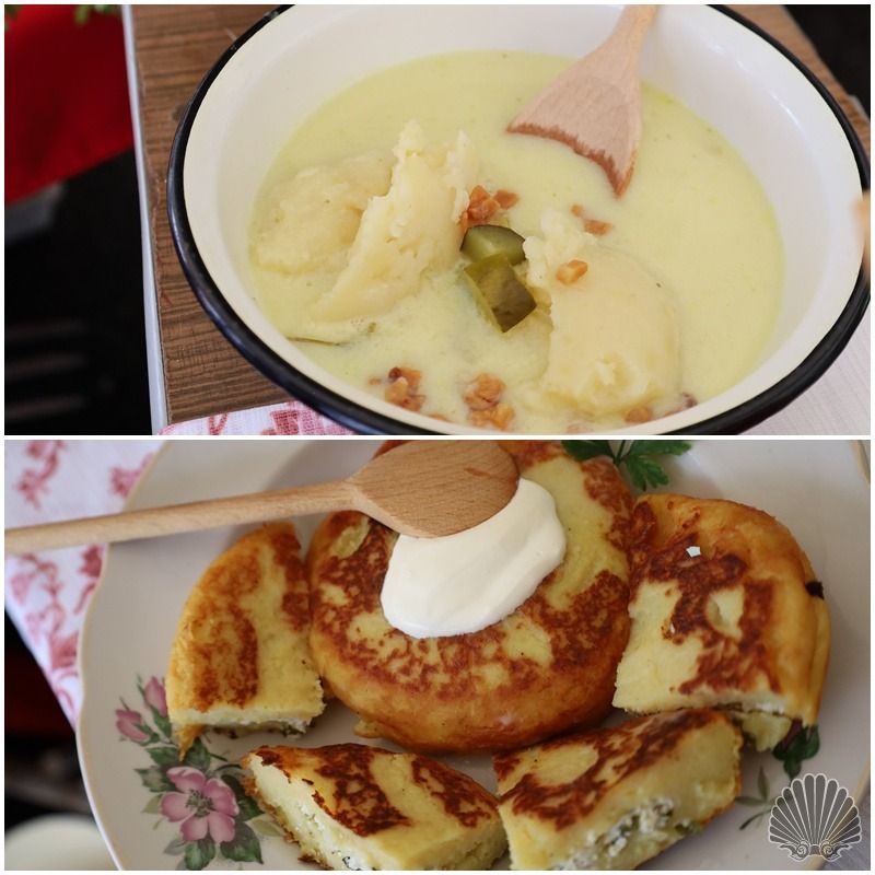 Konkurs kulinarny, Pełkińskie Stowarzyszenie Kobiet, potrawy konkursowe: ogórczanka, sasznie z twarogiem, fot. CK Przemyśl.