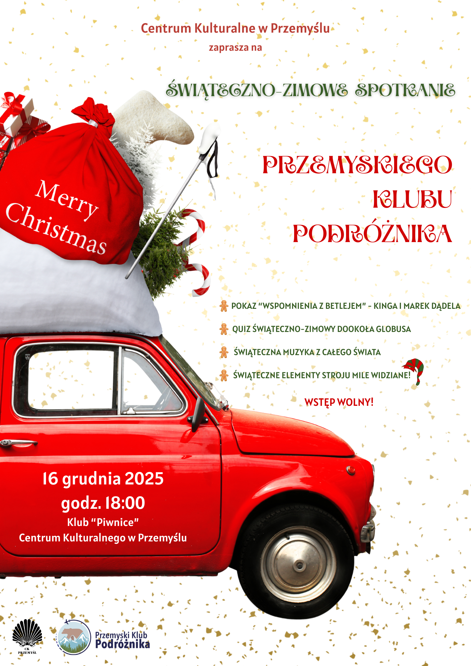 ŚWIĄTECZNO-ZIMOWE SPOTKANIE PRZEMYSKIEGO KLUBU PODRÓŻNIKA – Zapraszamy! Centrum Kulturalne w Przemyślu ma zaszczyt zaprosić wszystkich miłośników dalekich i bliskich wojaży na