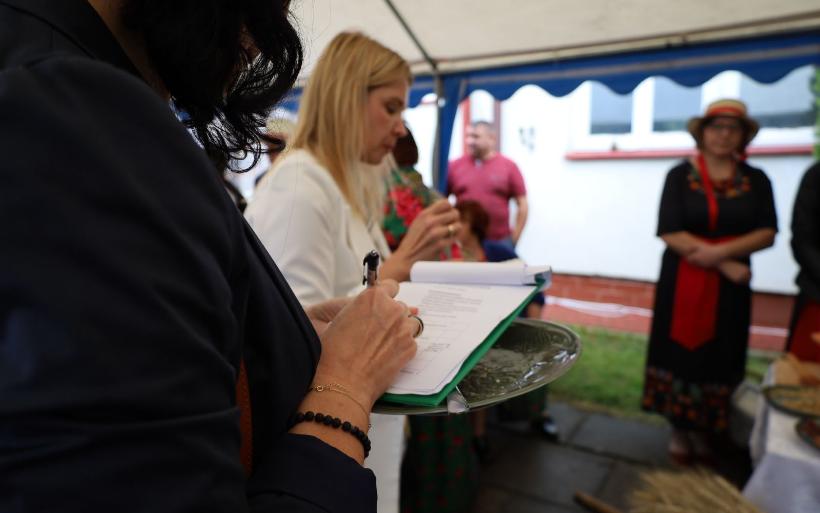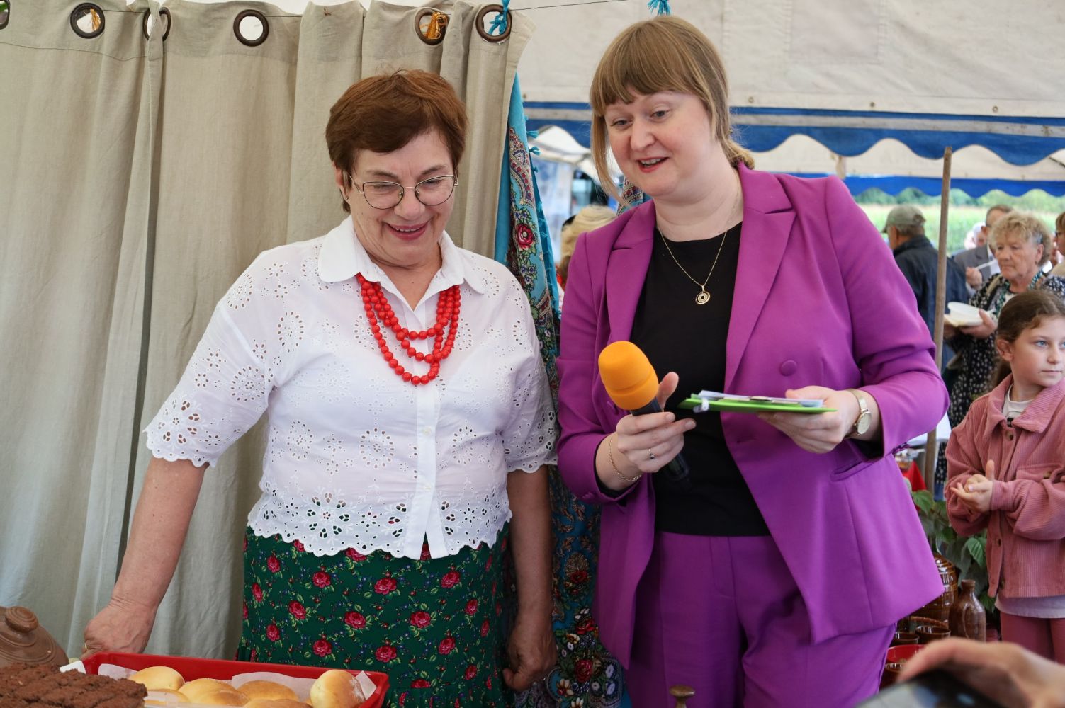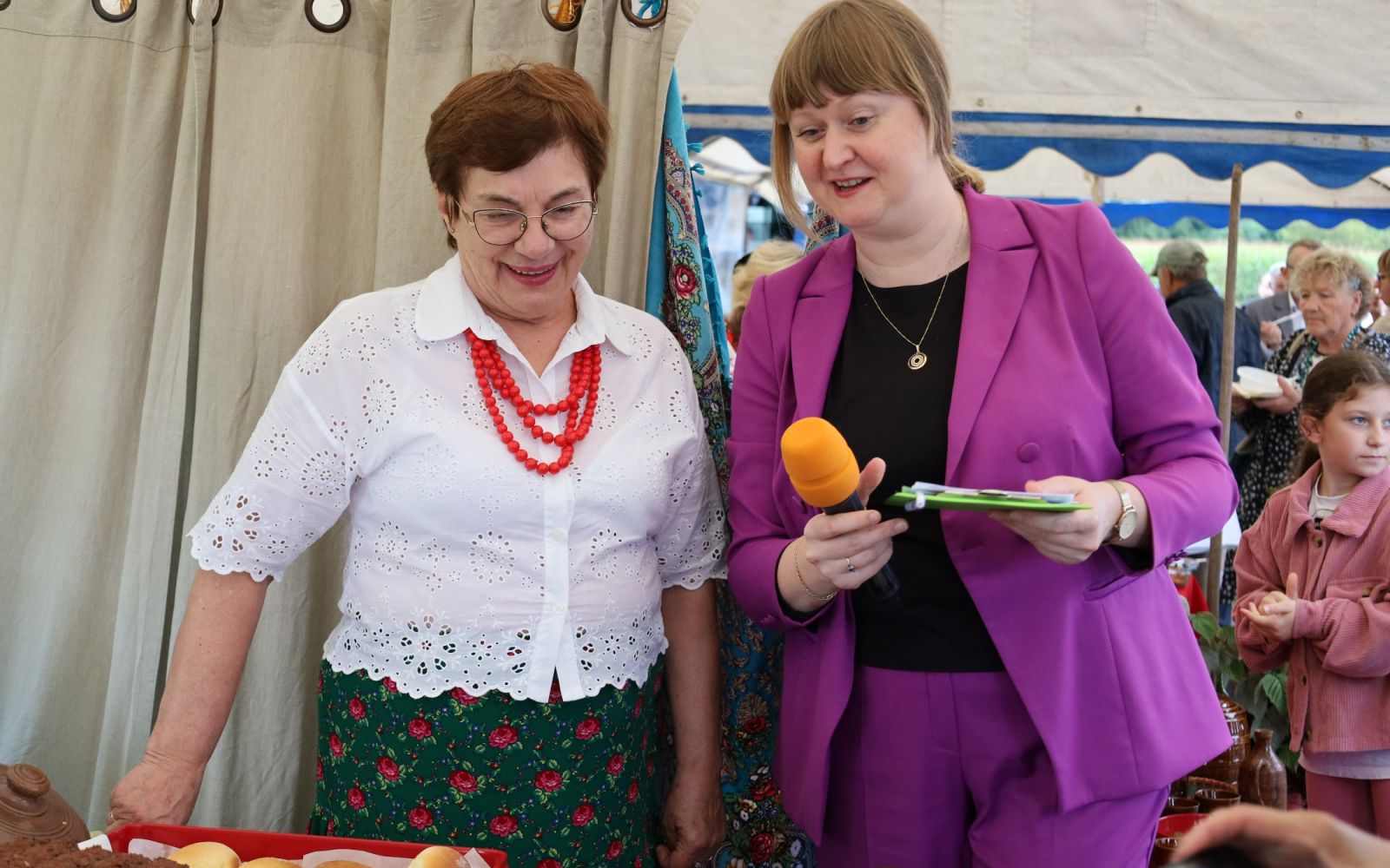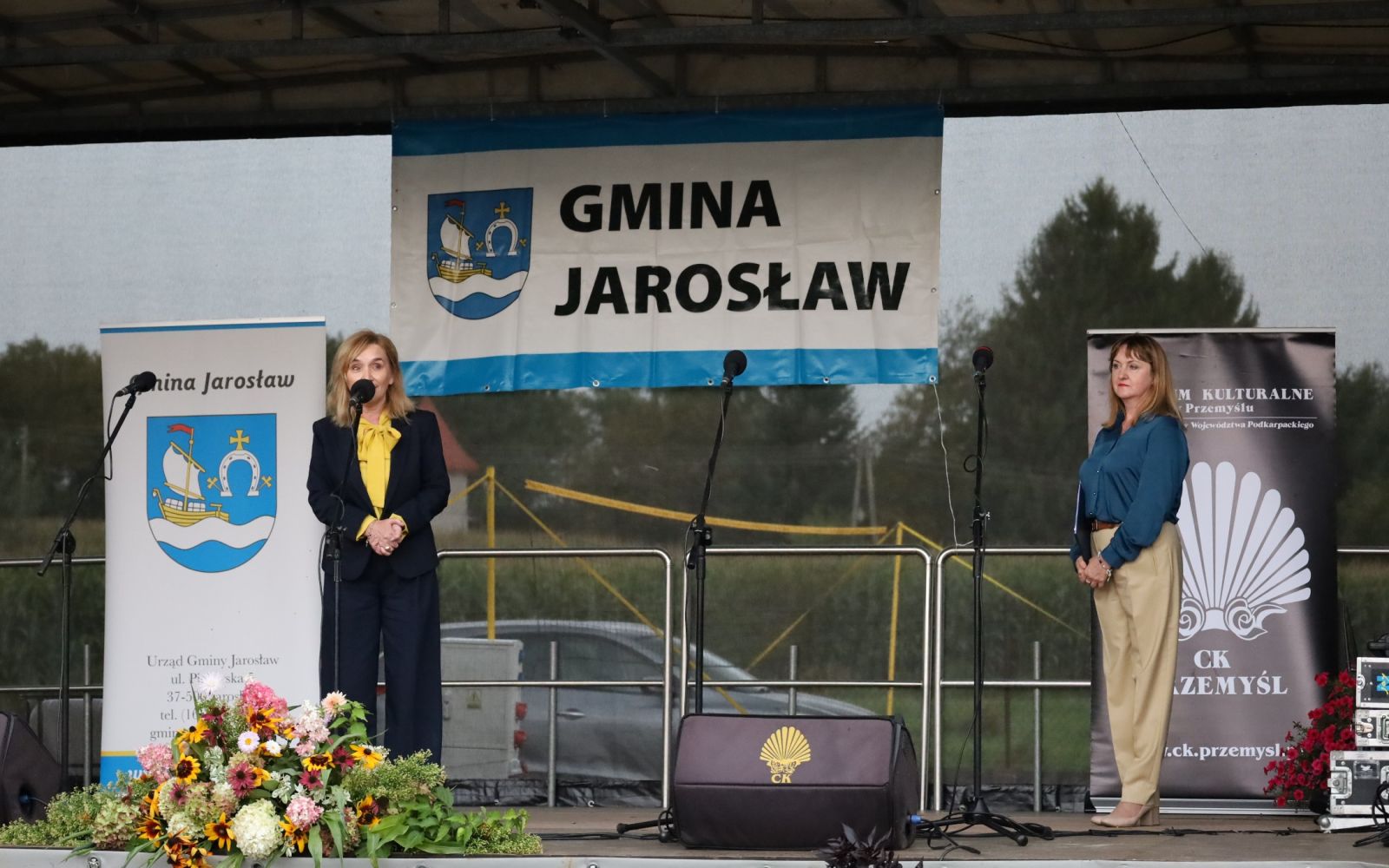 Biesiada nad Morawskim Łęgiem – Prezentacja Tradycji Kulinarnych Podkarpacia, Rozpoczęcie Biesiady, od lewej: Elżbieta Grunt – Wójt Gminy Jarosław, Zdzisława Kiełtyka – Urząd Gminy w Jarosławiu, fot. CK Przemyśl.