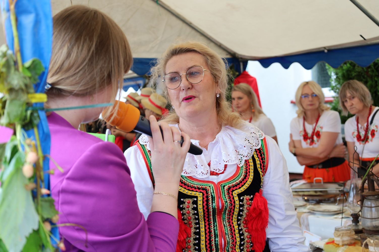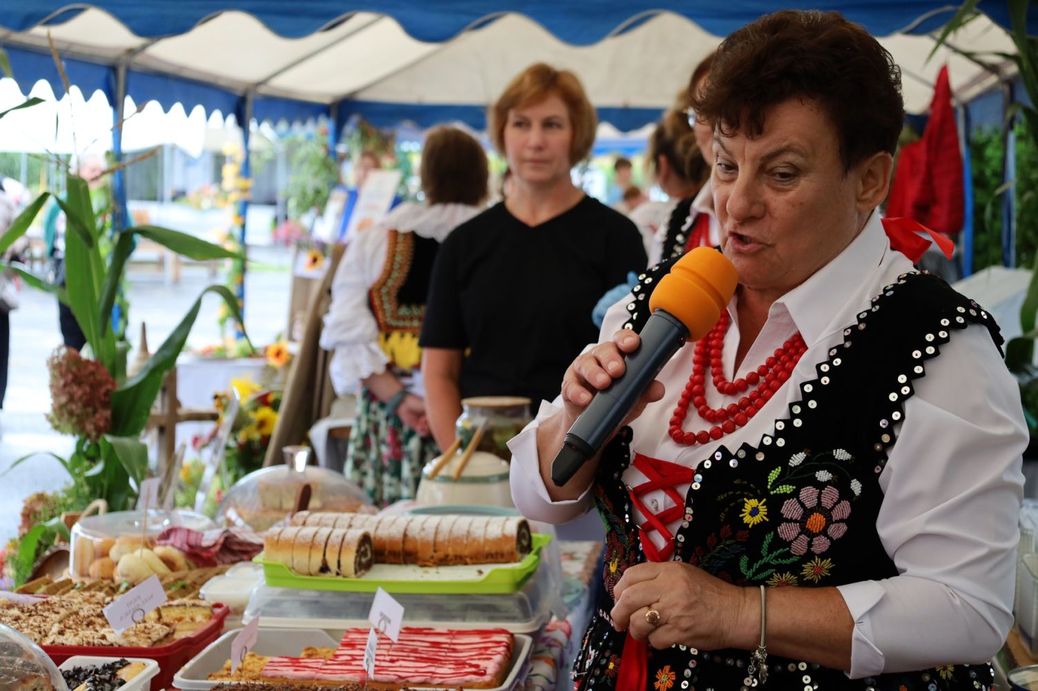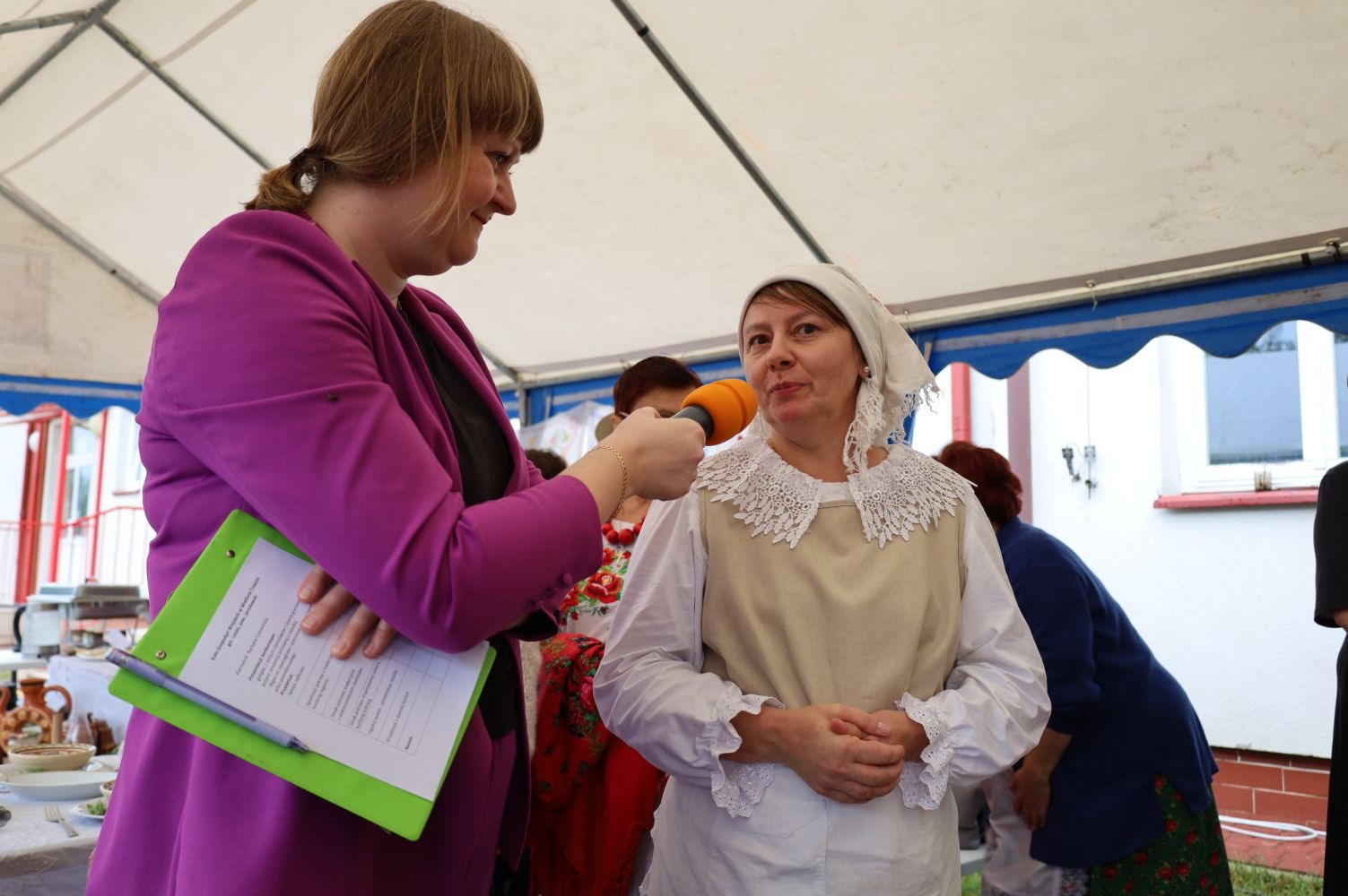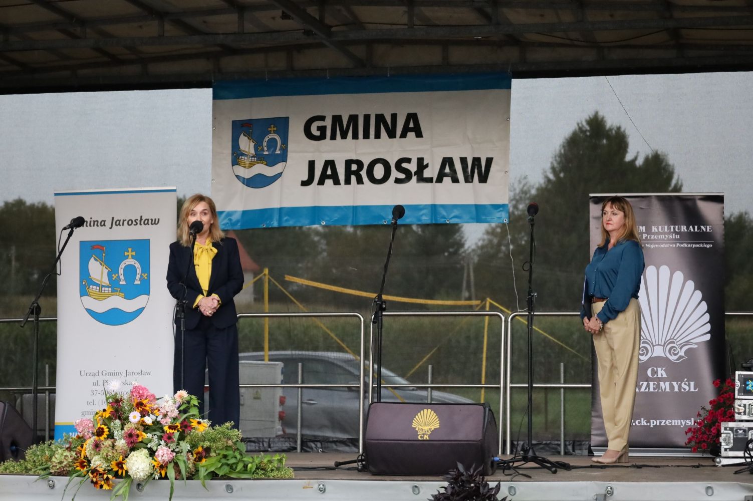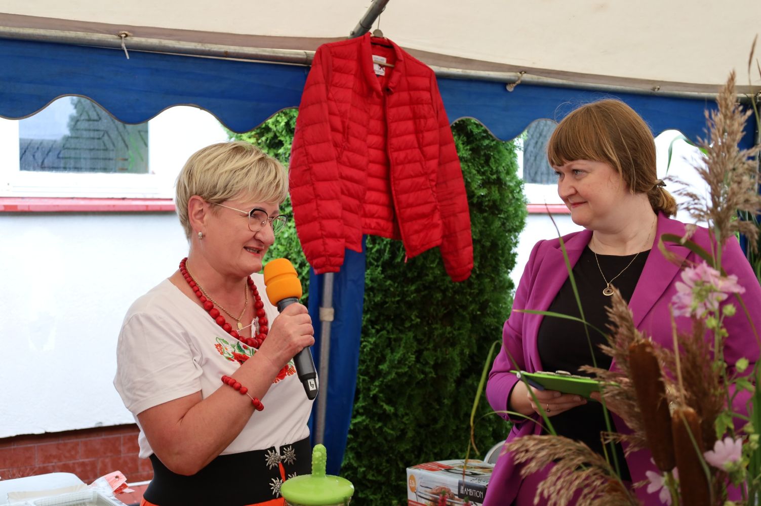 Biesiada nad Morawskim Łęgiem – Prezentacja Tradycji Kulinarnych Podkarpacia, Rozpoczęcie Biesiady, od lewej: Elżbieta Grunt – Wójt Gminy Jarosław, Zdzisława Kiełtyka – Urząd Gminy w Jarosławiu, fot. CK Przemyśl.