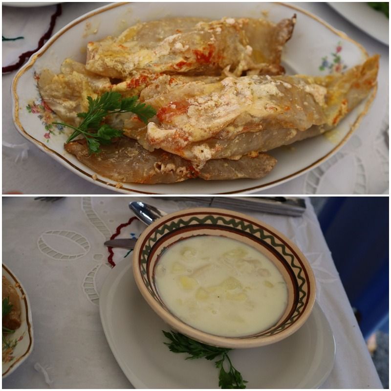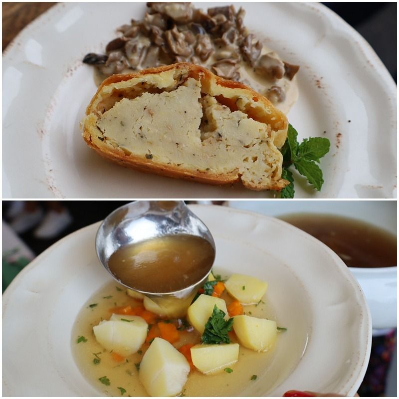 Konkurs kulinarny, KGW w Reczpolu, potrawy konkursowe: galicyjski strudel z ziemniaczanym farszem i sosem grzybowym, wieprzowy rosół po świniobiciu w Reczpolu, fot. CK Przemyśl.