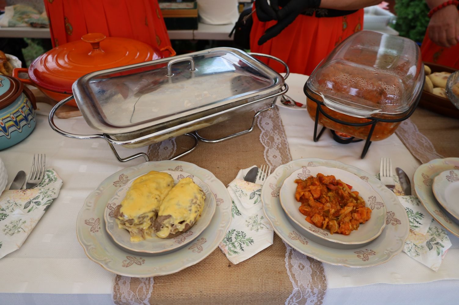 Konkurs kulinarny, KGW w Wietlinie, potrawy konkursowe: gołąbki ziemniaczane z kaszą gryczaną, bigos ze szparagówki z pieczoną dynią, fot. CK Przemyśl
