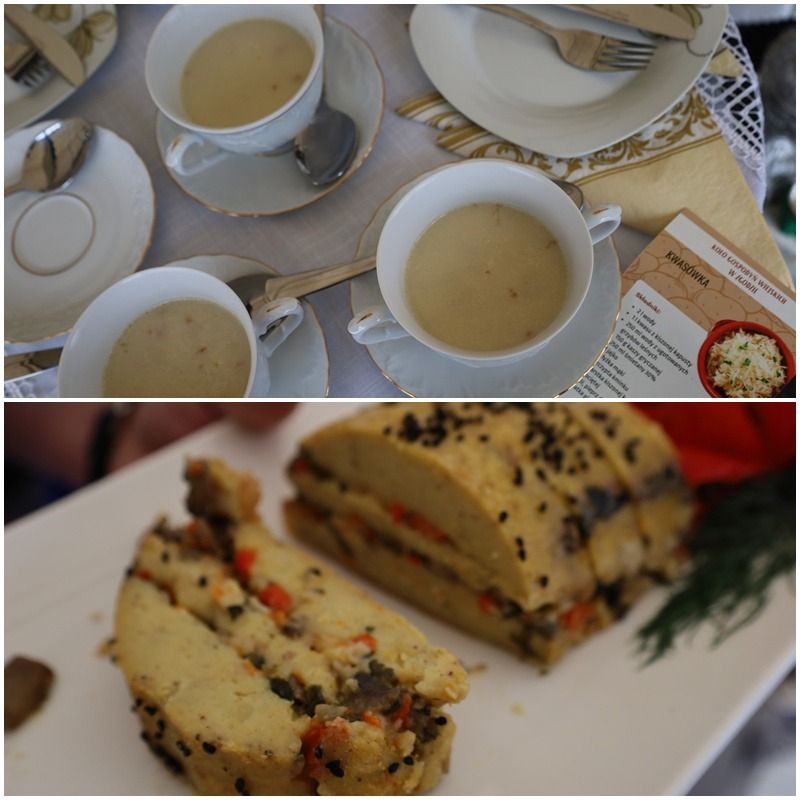 Konkurs kulinarny, Stowarzyszenie Seniorów „Tradycja i Nowoczesność” w Orłach, potrawy konkursowe: gołąbki z ziemniaków (kaszyckie), zupa zabielana, fot. CK Przemyśl.