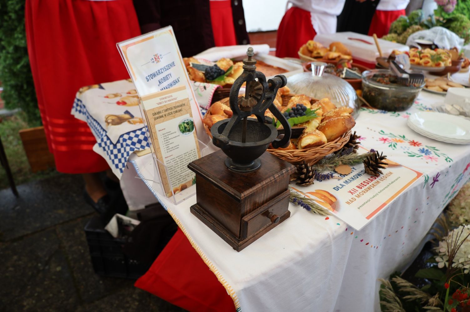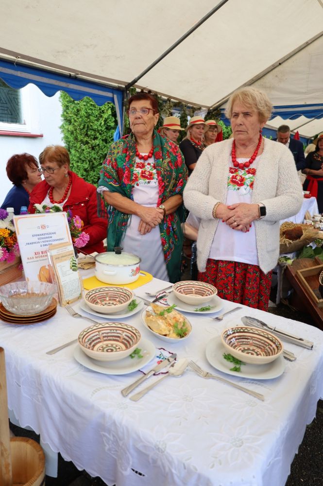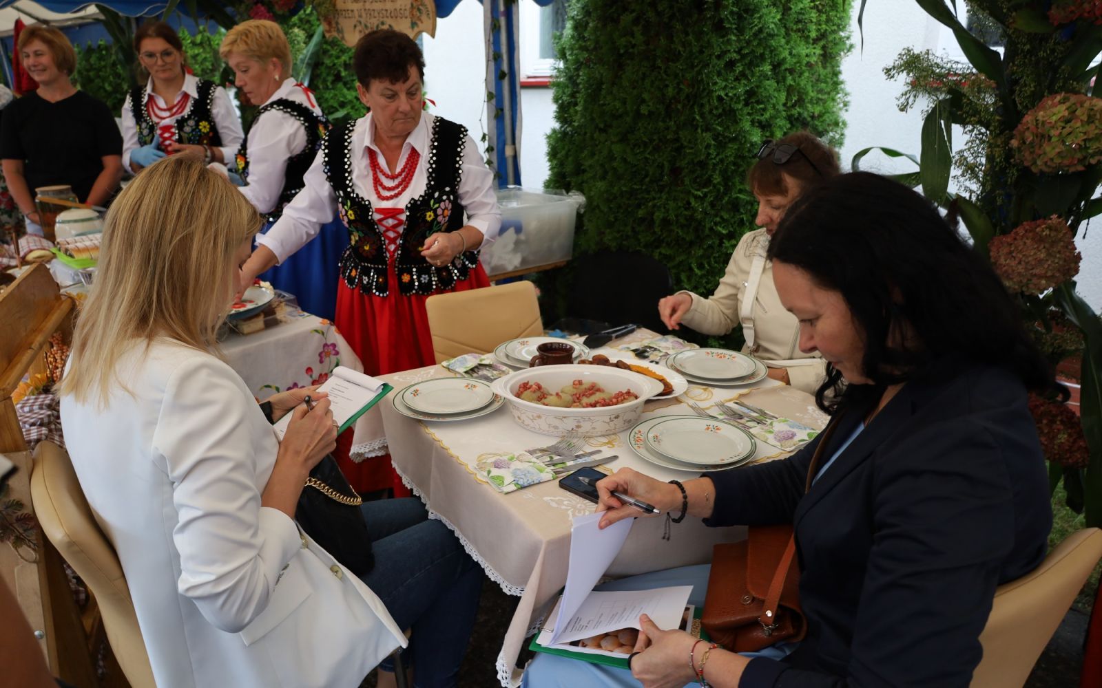 Jury oceniło potrawy pod względem zgodności z tradycją, walorów smakowych i estetycznych, a także ogólnej prezentacji stoiska oraz stwierdziło, że potrawy odpowiadają tradycyjnym recepturom, przygotowane zostały z należytą starannością, zostały atrakcyjnie podane oraz posiadały wyśmienite walory smakowe. Jury postanowiło przyznać nagrody uwzględniając zarówno wyjątkowe odwzorowania dawnych przepisów jak i połączenia tradycji z nowoczesnością oraz spójną koncepcję całości. Nagrodzone potrawy urzekły komisję głębokim, domowym smakiem oraz ciekawym sposobem podania, nawiązującym do dawnej wiejskiej kuchni. Jury doceniło autentyczność smaku, staranność wykonania oraz szczegółową prezentację historii dania. Komisja wzięła również pod uwagę doskonałe odwzorowanie klasycznej potrawy z dzieciństwa wielu mieszkańców regionu, a także oryginalność i odwagę w łączeniu smaków. Jury doceniło również elementy wystroju stoisk, nawiązujące do tradycyjnych lokalnych wzorów (w tym m.in. serwetki płócienne wyszywane z lokalnym haftem, naczynia kamionkowe i drewniane) wykorzystujące do dekoracji pamiątki rodzinne (takie jak haftowane ręcznie obrusy, serwety, elementy zastawy stołowej), a także naturalne świeże owoce i warzywa oraz świeże kwiaty pochodzące z łąk i domowych ogródków. Zalecamy, aby przy przygotowaniu stoiska zwrócić szczególną uwagę na poprawność stosowanych ornamentów i wyeliminować obce wzory, pochodzące z poza naszego regionu, a także ograniczyć sztuczne dekoracje stołów (np. poliestrowe obrusy, plastikowe talerze). Zamiast nich proponujemy użyć dekoracji rękodzielniczych i pamiątek rodzinnych oraz zwrócić uwagę na estetykę podania potraw na tradycyjnych naczyniach wykonanych z naturalnych materiałów. Również w przypadku nazw potraw należy posługiwać się określeniami miejscowymi, lokalnymi, eliminując nazwy pochodzące z innych regionów. Zachęcamy również do prezentowania się w rekonstrukcjach strojów lub stylizacji, w których użyte są wzory związane z związane z lokalną tradycją naszego regionu. Taki strój nie tylko podkreśli wyjątkowy charakter wydarzenia, ale również pomoże w budowaniu atmosfery wspólnego świętowania lokalnej kultury i tradycji. Podsumowując, wszyscy Uczestnicy wykazali się dużą znajomością regionalnych receptur i umiejętnością ich twórczego rozwinięcia. Dziękujemy wszystkim uczestnikom za zaangażowanie, pasję i chęć dzielenia się lokalnym dziedzictwem kulinarnym.