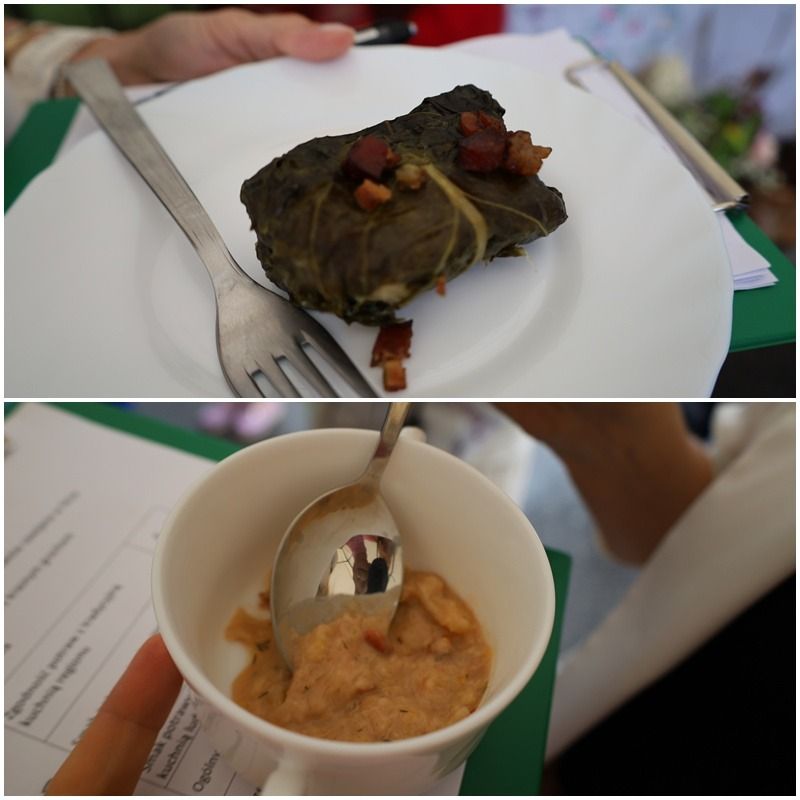 Konkurs kulinarny, Stowarzyszenie „Kobiety dla Makowiska”, potrawy konkursowe: gołąbki zawijane w liście chrzanu, kapusta kiszona z krasym grochem, fot. CK Przemyśl.