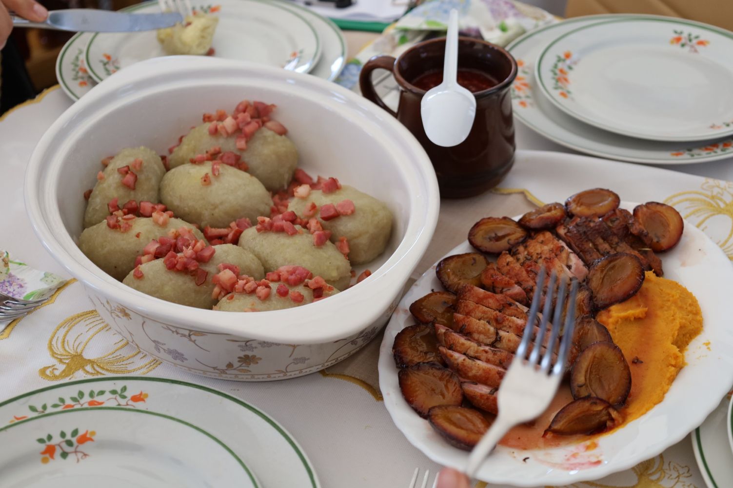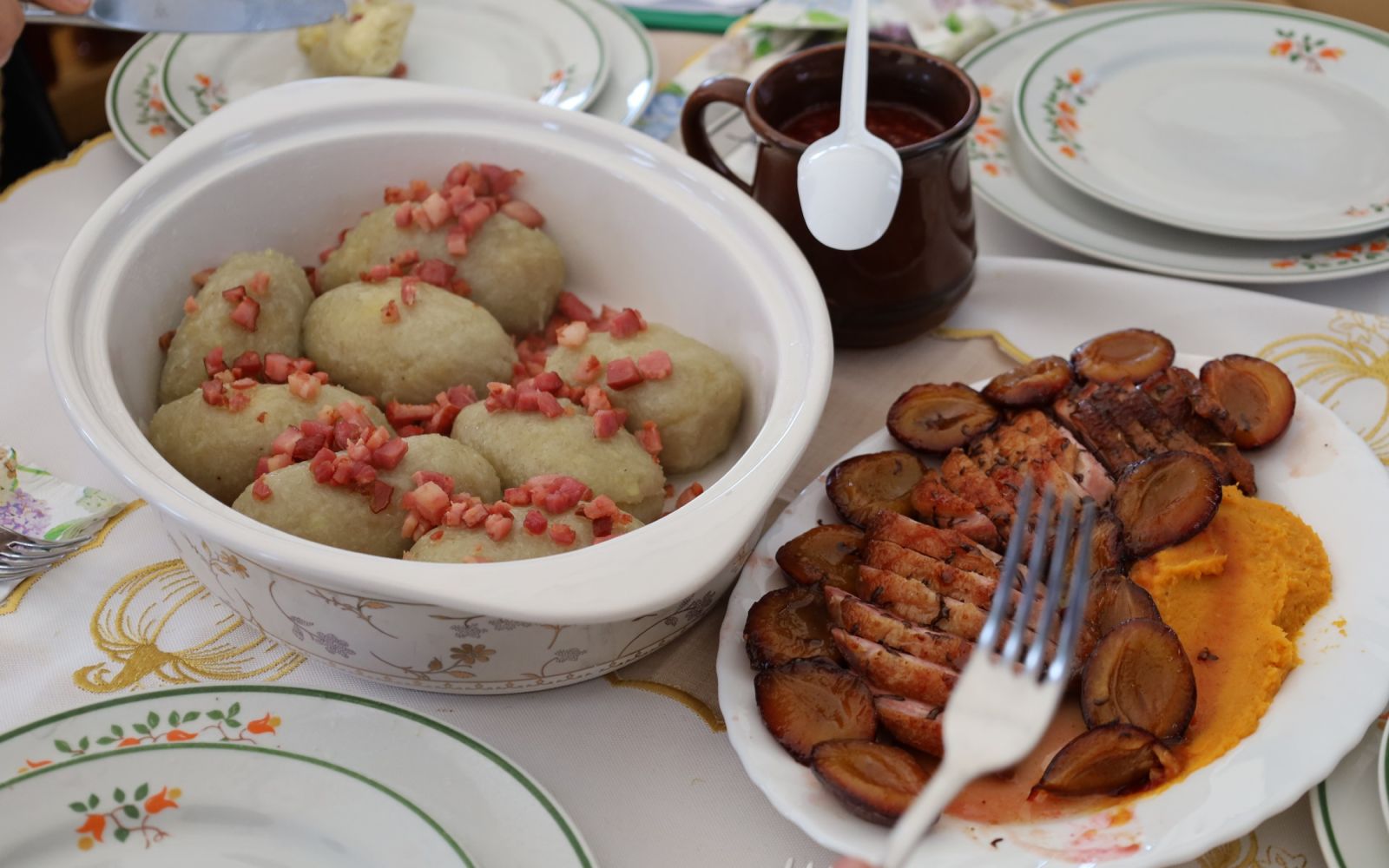 Konkurs kulinarny, Stowarzyszenie „Razem w Przyszłość w Morawsku”, potrawy konkursowe: kartacze, pierś z kaczki ze śliwkami i puree z batatów, fot. CK Przemyśl