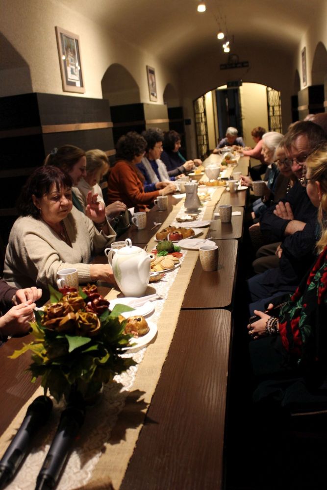 Po części artystycznej zaprosiliśmy gości na chwilę rozmowy przy filiżance korzennej herbaty i pieczonych jabłkach. Była to doskonała okazja, by w kameralnej atmosferze podzielić się refleksjami i uśmiechem.