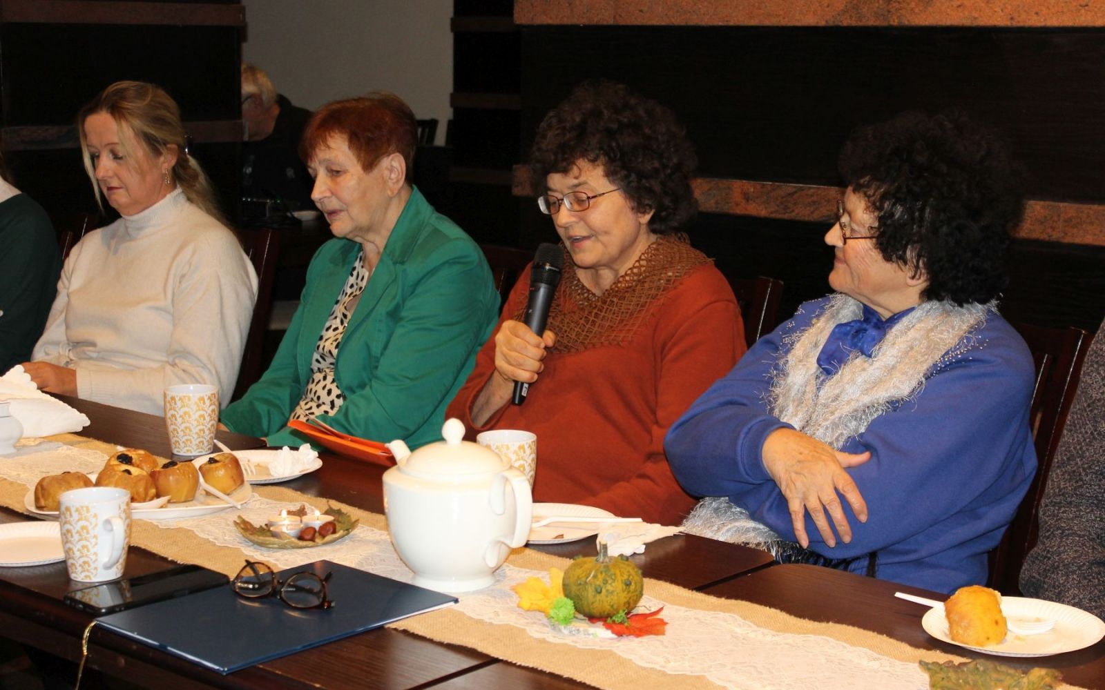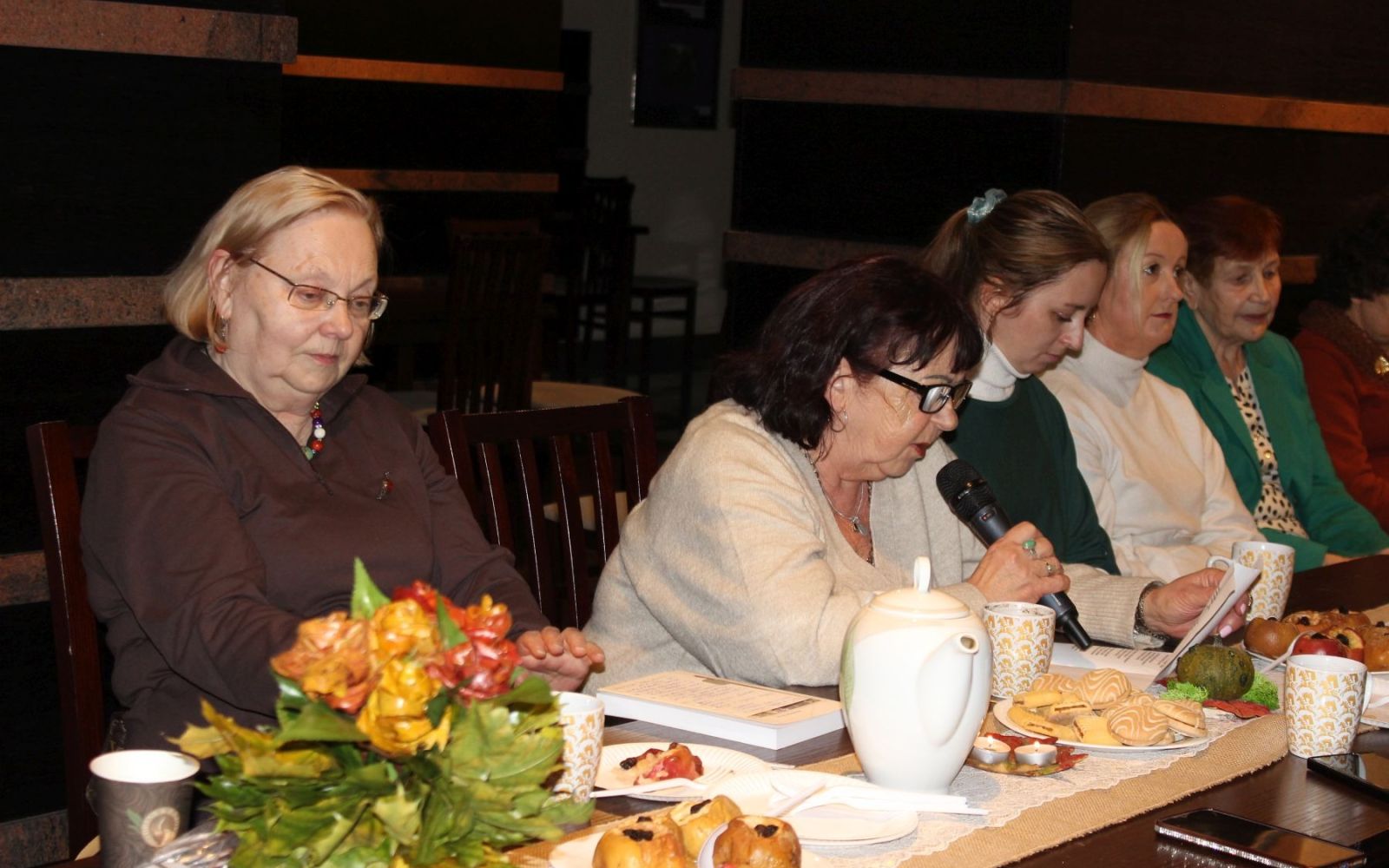 W wydarzeniu wzięło udział dziesięć poetek, które podzieliły się swoją twórczością inspirowaną jesienią — zarówno tą za oknem, jak i tą zakorzenioną w pamięci i sercu. Usłyszeliśmy wiersze o smakach dzieciństwa, domowej kuchni, babcinych przetworach, ale też te o jesieni życia — pełnej zadumy, refleksji i cichego piękna. Poezja, podobnie jak jesienne potrawy, niosła ze sobą ciepło i nostalgię. Każdy wers zdawał się być jak łyżka gorącej zupy dyniowej czy łagodny zapach jabłek z cynamonem – rozgrzewający duszę i przywołujący ukochane wspomnienia.