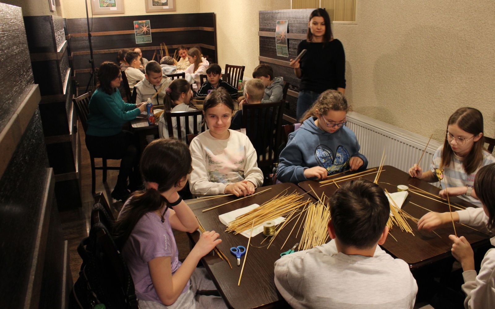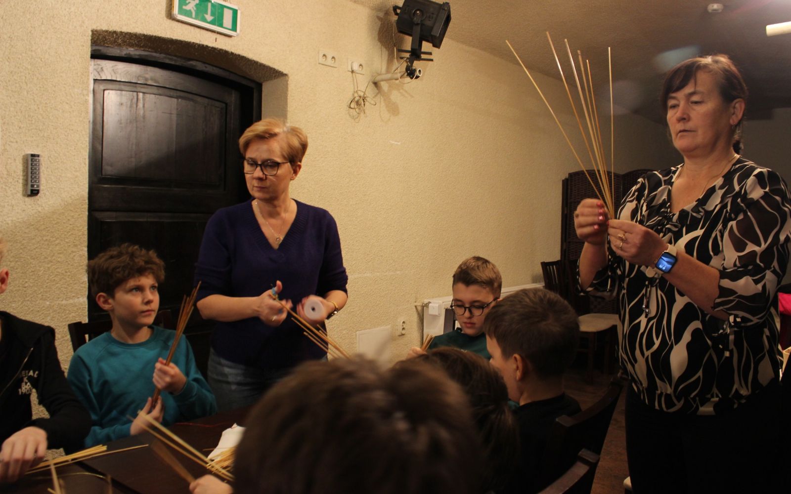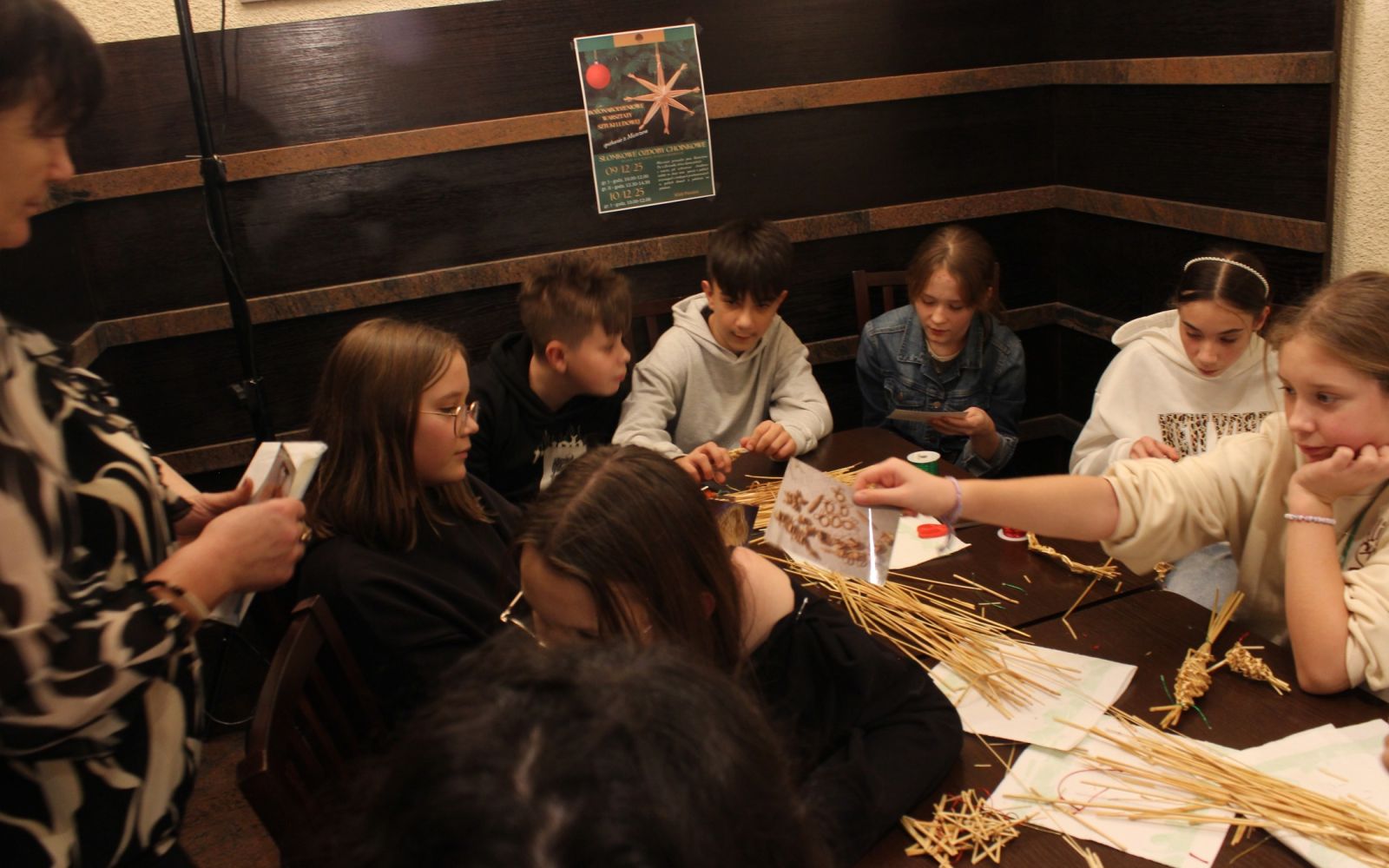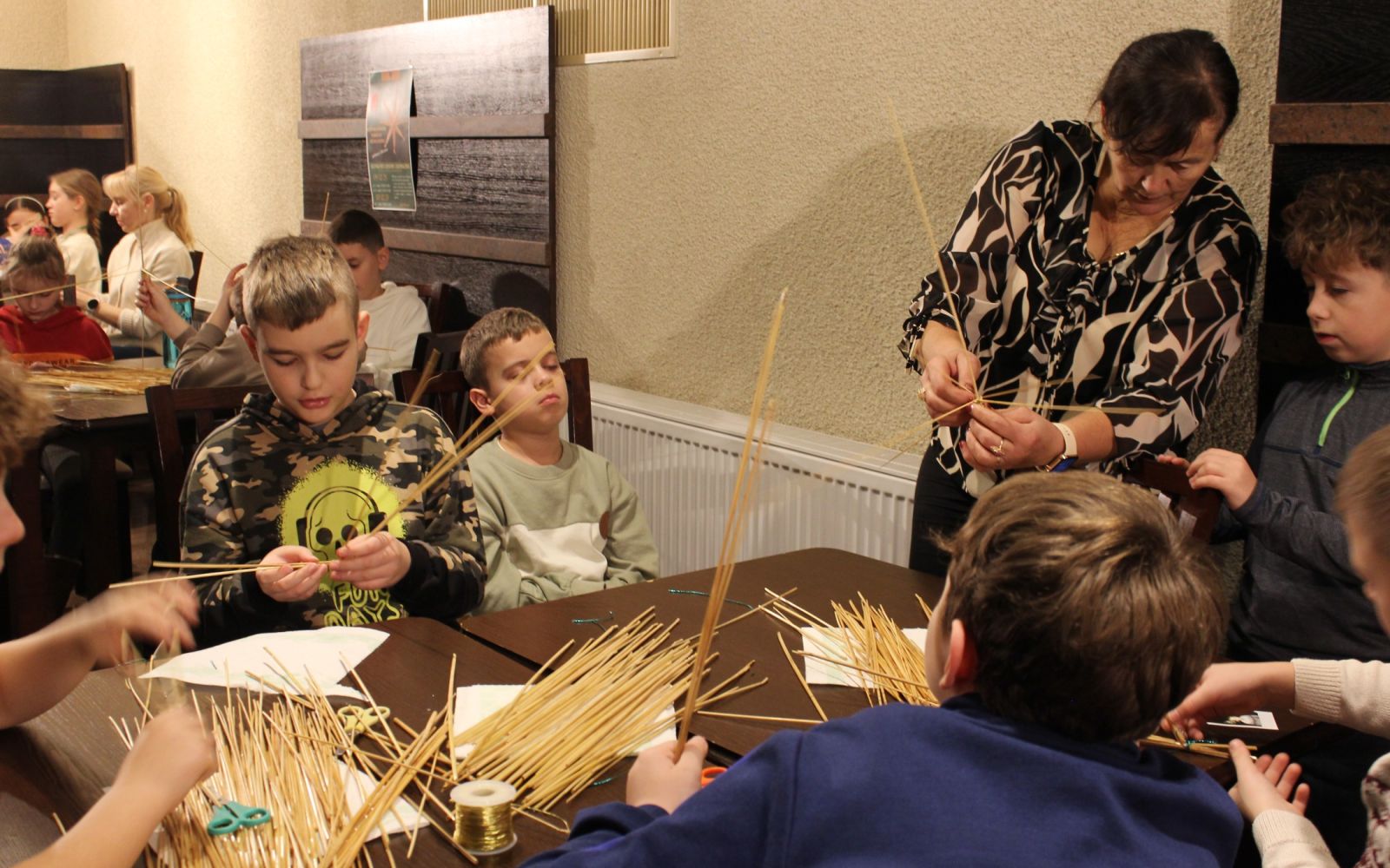 Przez dwa dni trwały warsztaty „słomkowe”, które poprowadziła pani Katarzyna Pyc z Zawadki (pow. strzyżowski). Pani Kasia jest twórczynią ludową i artystką, która z zapałem uczyła młodych uczestników naszych warsztatów wykonywać tradycyjne ozdoby choinkowe, a także opowiadała o polskich zwyczajach i tradycjach przekazywanych w polskich domach z pokolenia na pokolenie, pokazywała zdjęcia z rodzinnego albumu i dzieliła się wspomnieniami o tym, jak ta tradycja była i jest wciąż pielęgnowana i podtrzymywana w jej rodzinnym domu. Na koniec każdych zajęć zostały wybrane najpiękniejsze prace i nagrodzone tradycyjną ozdoba choinkową wykonaną przez panią Kasię. W warsztatach uczestniczyły dzieci ze szkoły podstawowej w Torkach i Medyce oraz z przemyskich szkół podstawowych nr 15 i 5.