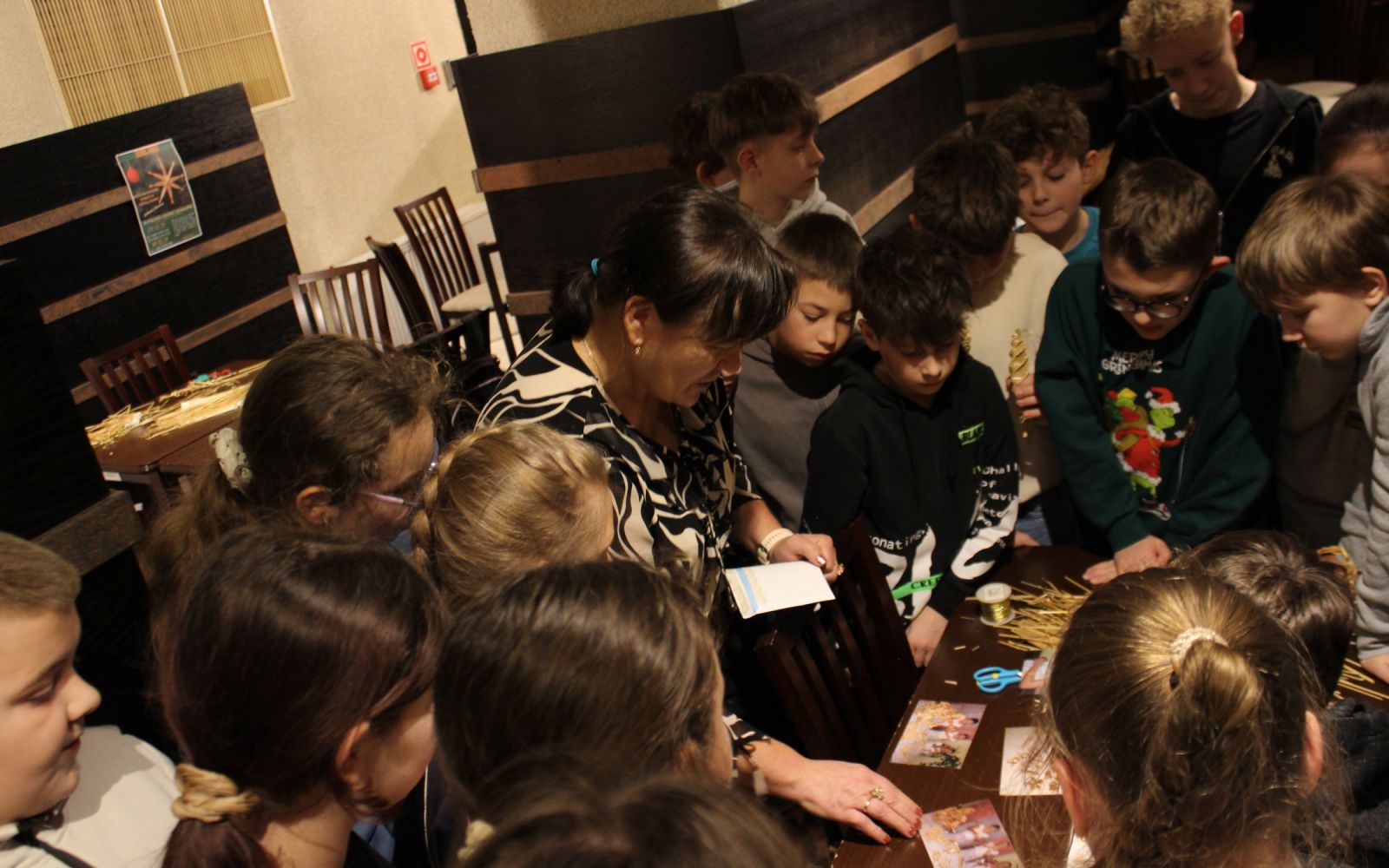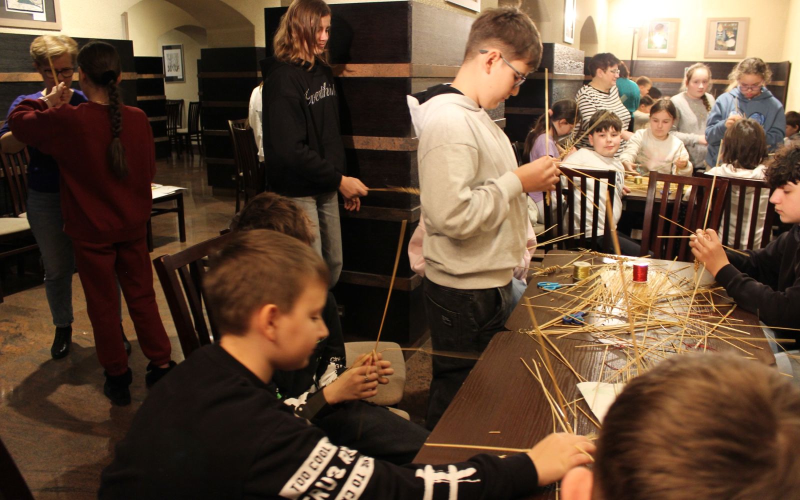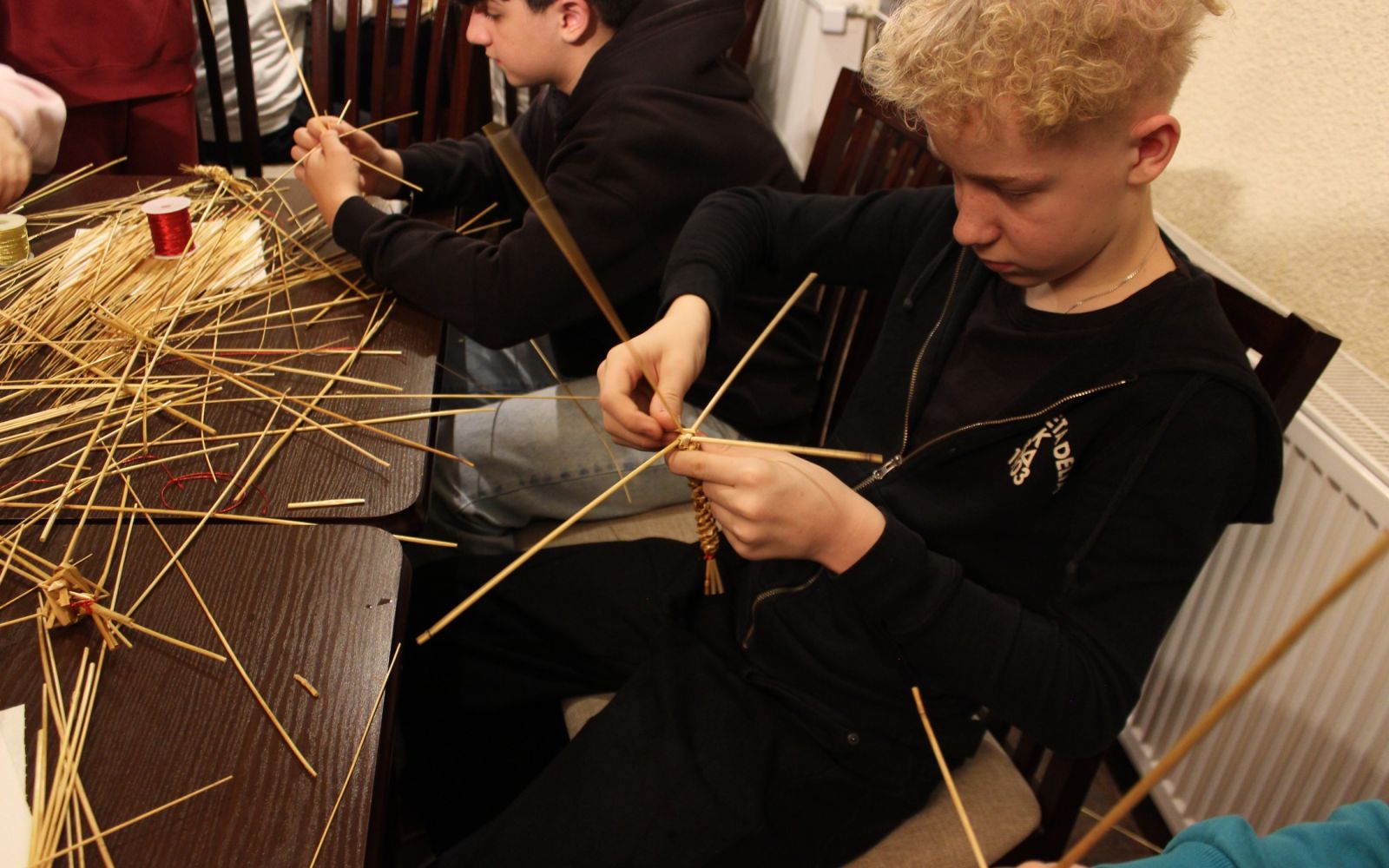 Przez dwa dni trwały warsztaty „słomkowe”, które poprowadziła pani Katarzyna Pyc z Zawadki (pow. strzyżowski). Pani Kasia jest twórczynią ludową i artystką, która z zapałem uczyła młodych uczestników naszych warsztatów wykonywać tradycyjne ozdoby choinkowe, a także opowiadała o polskich zwyczajach i tradycjach przekazywanych w polskich domach z pokolenia na pokolenie, pokazywała zdjęcia z rodzinnego albumu i dzieliła się wspomnieniami o tym, jak ta tradycja była i jest wciąż pielęgnowana i podtrzymywana w jej rodzinnym domu. Na koniec każdych zajęć zostały wybrane najpiękniejsze prace i nagrodzone tradycyjną ozdoba choinkową wykonaną przez panią Kasię. W warsztatach uczestniczyły dzieci ze szkoły podstawowej w Torkach i Medyce oraz z przemyskich szkół podstawowych nr 15 i 5.