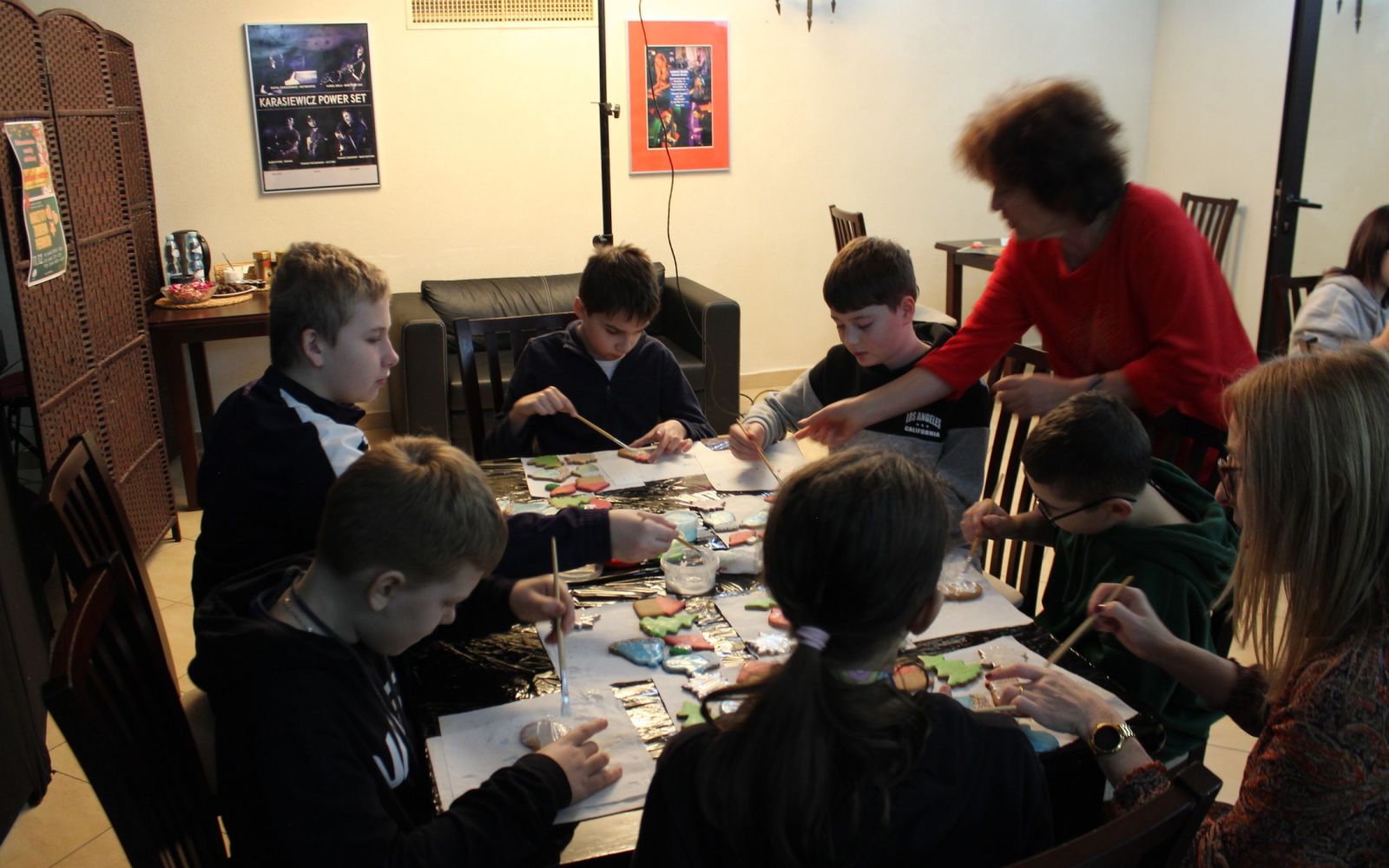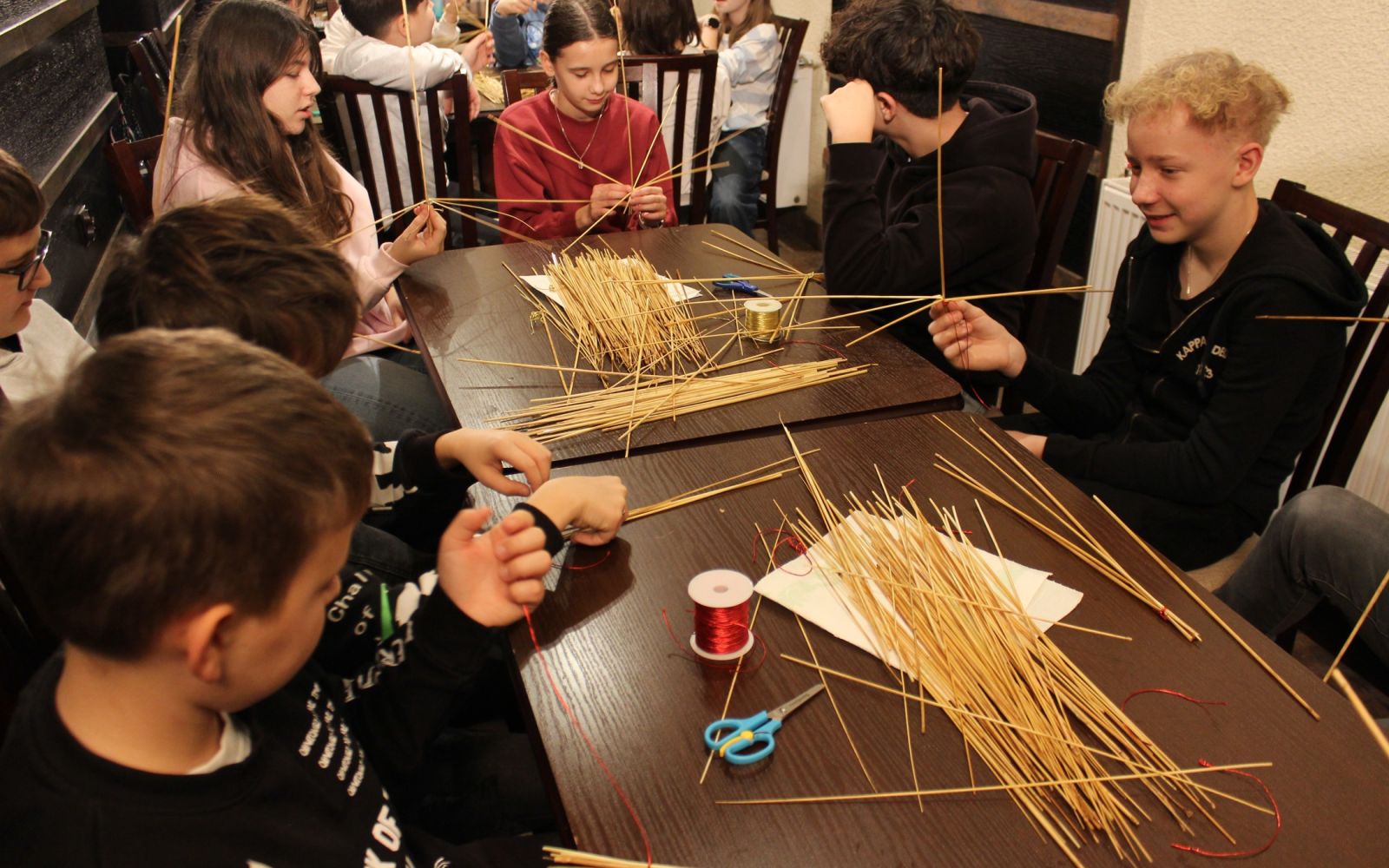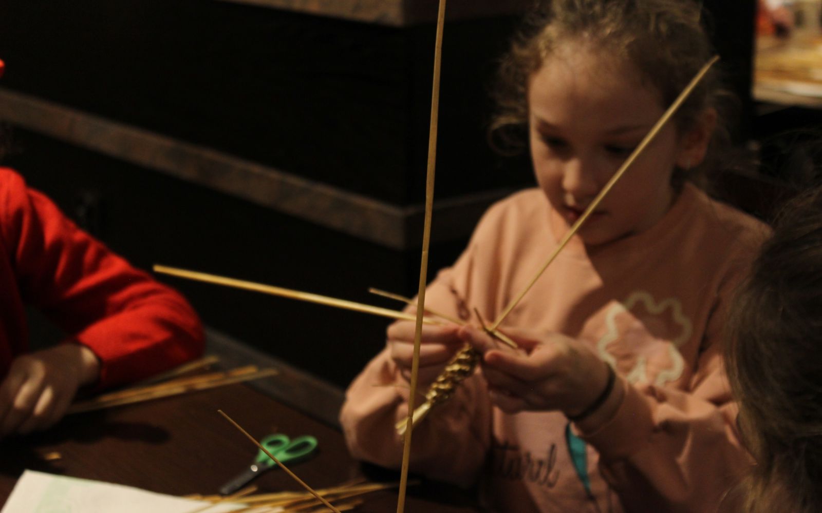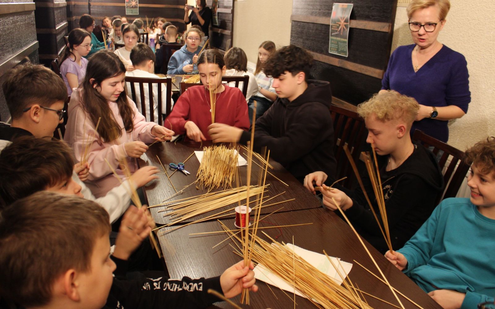 Przez dwa dni trwały warsztaty „słomkowe”, które poprowadziła pani Katarzyna Pyc z Zawadki (pow. strzyżowski). Pani Kasia jest twórczynią ludową i artystką, która z zapałem uczyła młodych uczestników naszych warsztatów wykonywać tradycyjne ozdoby choinkowe, a także opowiadała o polskich zwyczajach i tradycjach przekazywanych w polskich domach z pokolenia na pokolenie, pokazywała zdjęcia z rodzinnego albumu i dzieliła się wspomnieniami o tym, jak ta tradycja była i jest wciąż pielęgnowana i podtrzymywana w jej rodzinnym domu. Na koniec każdych zajęć zostały wybrane najpiękniejsze prace i nagrodzone tradycyjną ozdoba choinkową wykonaną przez panią Kasię. W warsztatach uczestniczyły dzieci ze szkoły podstawowej w Torkach i Medyce oraz z przemyskich szkół podstawowych nr 15 i 5.
