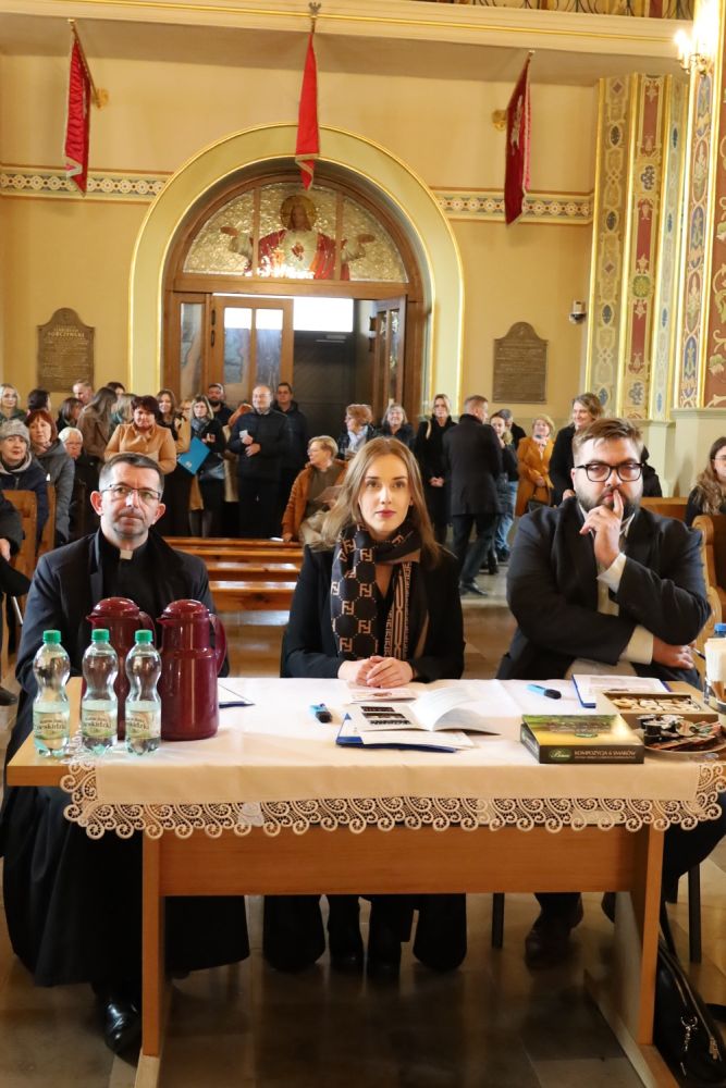 Rozpoczęcie Przeglądu, od lewej: Iwona Buczko – konferansjer Przeglądu, ks. Andrzej Stopyra – Proboszcz Parafii Konkatedralnej, fot. CK Przemyśl