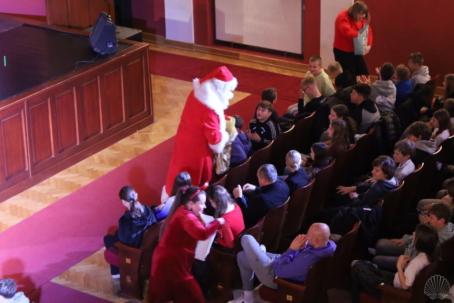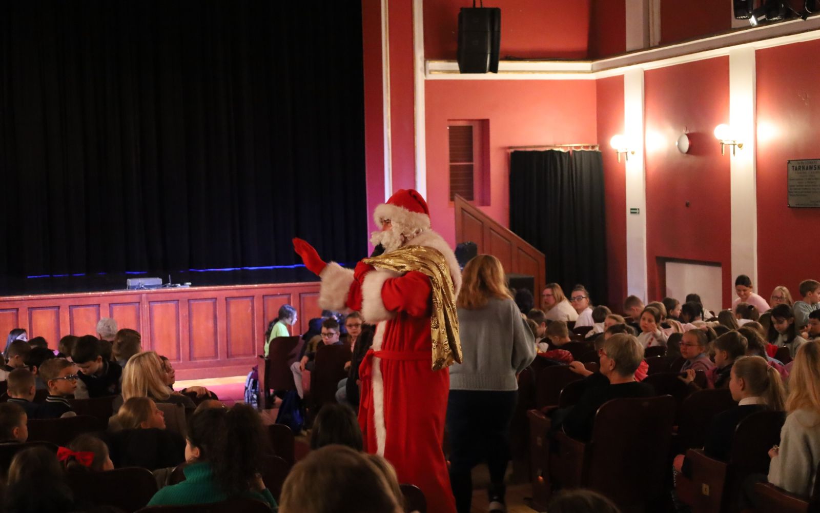 8 grudnia, uczniowie szkół podstawowych wybrali się do kina na spektakl „Królowa Śniegu” w wykonaniu Zespołu Tanecznego Koralik. Tuż przed seansem czekała na nich wyjątkowa niespodzianka — odwiedziny św. Mikołaja, który przywitał dzieci słodkościami i drobnymi upominkami.