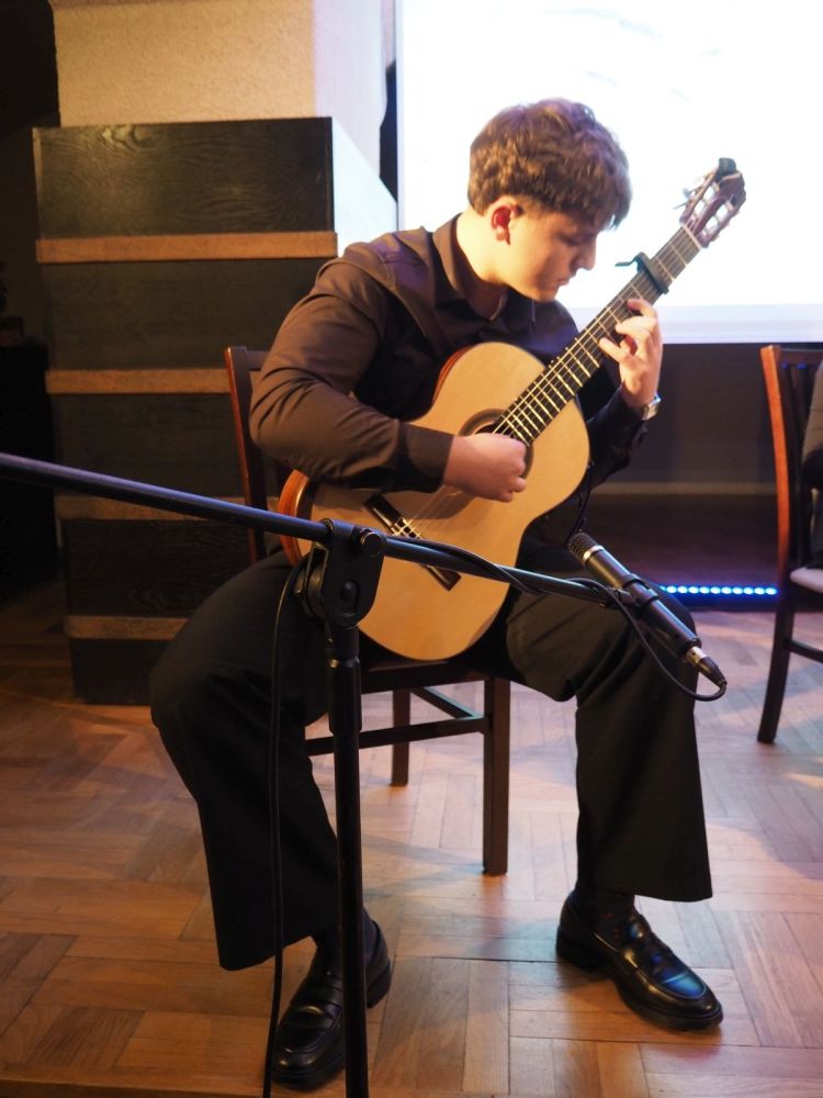 Ważnym dopełnieniem wieczoru była oprawa muzyczna w wykonaniu dwóch młodych, niezwykle zdolnych gitarzystów – Kacpra Kopańskiego i Mikołaja Batora, tegorocznych maturzystów Zespołu Państwowych Szkół Muzycznych im. Artura Malawskiego w Przemyślu. Ich znakomite interpretacje utworów Joaquina Turiny, Jana Sebastiana Bacha czy Johna Duarte wprowadziły słuchaczy w jeszcze głębszy, emocjonalny odbiór prezentowanej poezji.