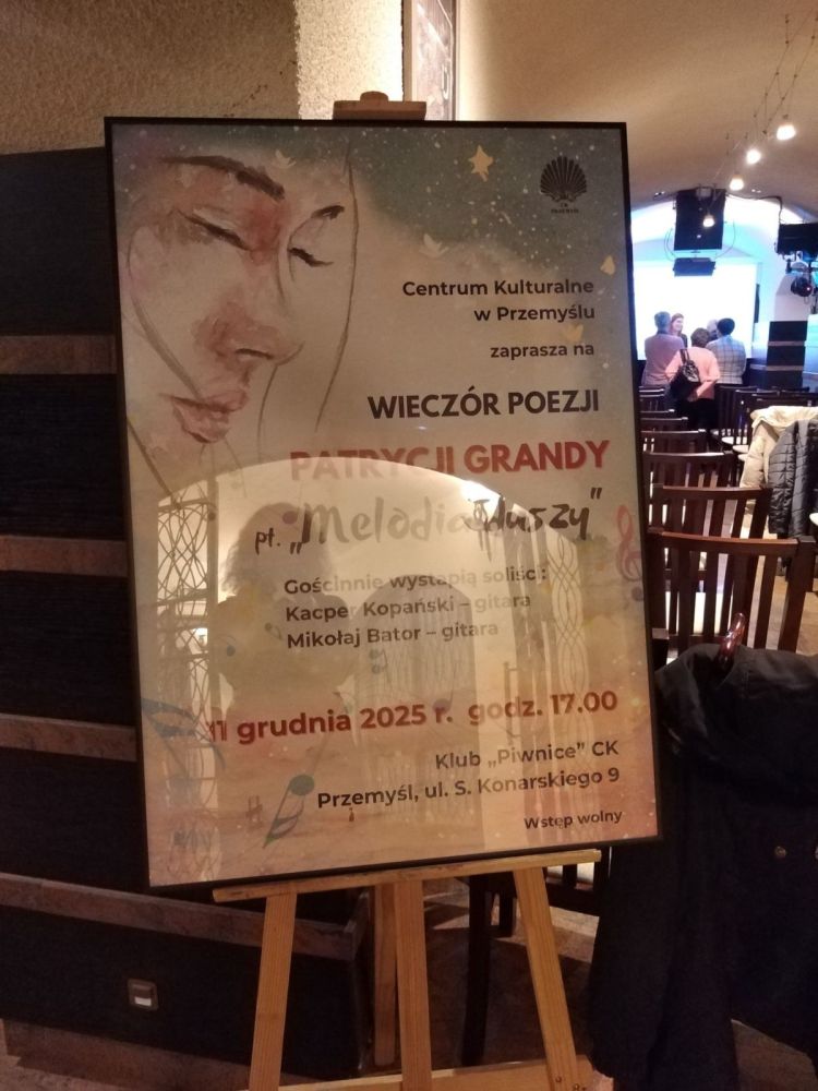 W czwartkowy wieczór, 11 grudnia br.,  w Klubie „Piwnice” Centrum Kulturalnego odbyło się wyjątkowe spotkanie poetyckie poświęcone twórczości młodej poetki Patrycji Grandy. W kameralnej i pełnej nastroju atmosferze publiczność miała okazję uczestniczyć w promocji jej najnowszego tomiku poezji „Melodia duszy” — zbioru niezwykle osobistych, pełnych duchowości i emocjonalnej głębi utworów.